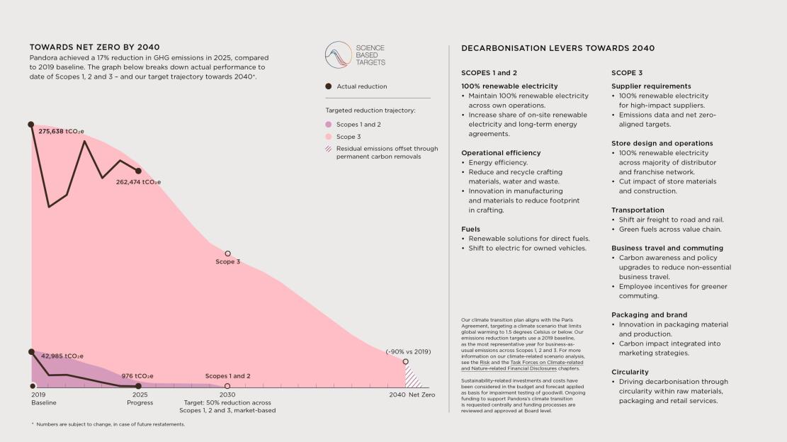 In 2025, Scope 3 emissions decreased by 5% from 2024, due to expanded renewable electricity coverage, less business travel and optimisation efforts. Among others, this included air-to-ground transition and value engineering of store displays and trays. We continue to focus on supplier capacity-building initiatives, including e-learning training on key sustainability topics and low-carbon clauses in supplier contracts which encourage emissions reporting and reduction.