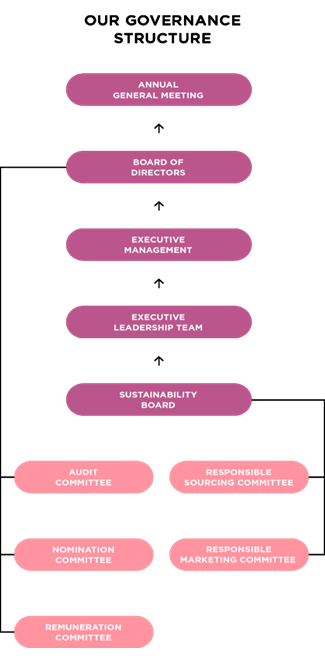 Two subject-specific committees (the Responsible Sourcing Committee and the Responsible Marketing Committee) oversee key sustainability areas on responsible sourcing and responsible marketing. The Low Carbon Forum remains active, while the CSRD Task Force has concluded its work.